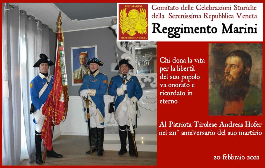 In allen Landesteilen Tirols finden in diesen Tagen Andreas-Hofer-Gedenkfeiern statt. Vielfach nicht in gewohnter Manier, da die derzeitigen Umstände ein Ausrücken nicht zulassen. Auch außerhalb Tirols wird in diesen Tagen unserem Tiroler Volkshelden Andreas Hofers gedacht, etwa in Verona, Vicenza, Treviso und Venedig.