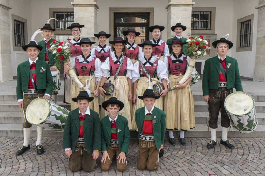 Am 7. September 1958 trat die Schützenkompanie Kaltern erstmals in der neuen Tracht anlässlich des ersten Gesamttiroler Schützenfestes in Kaltern auf.